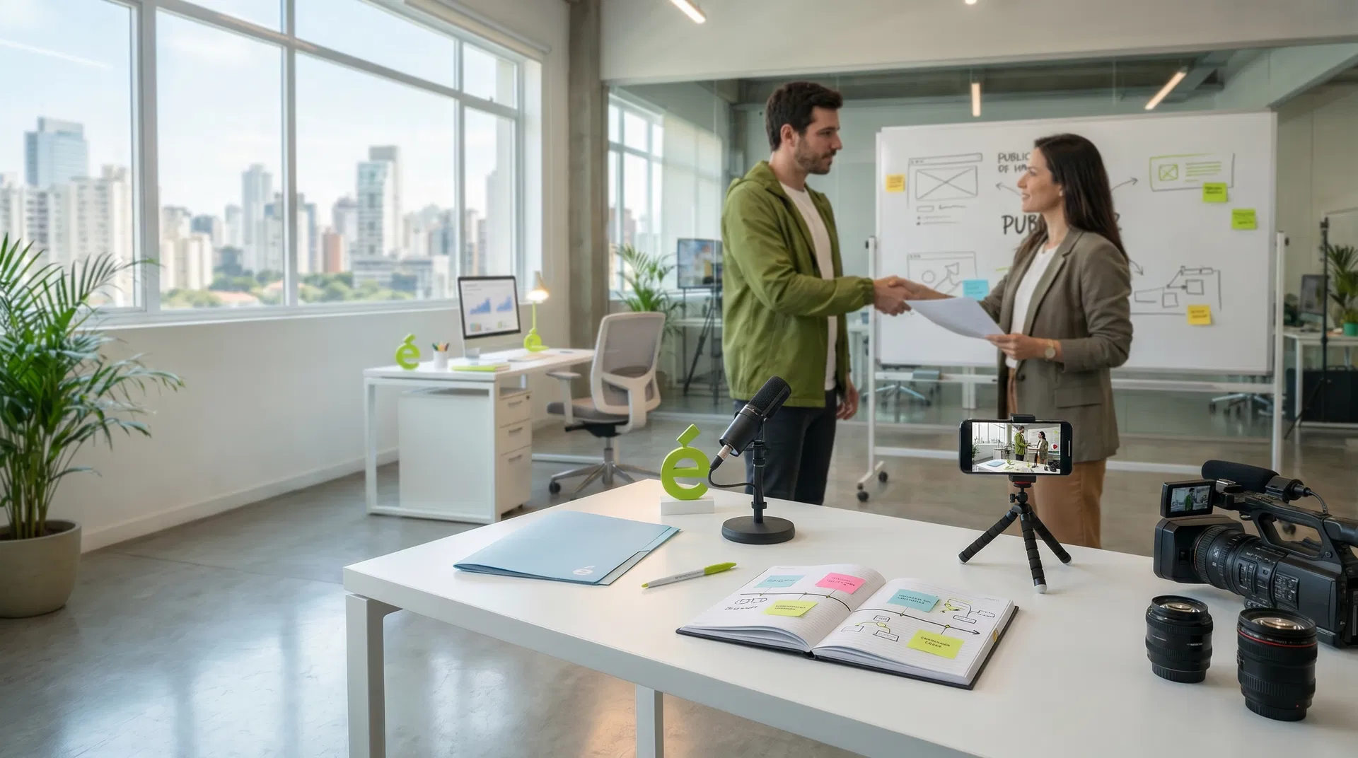 Esta área apresenta a atuação da agência em conteúdo político, gestão de imagem pública, vídeos, cobertura de agenda e campanhas institucionais, com linguagem visual mais estratégica e institucional.